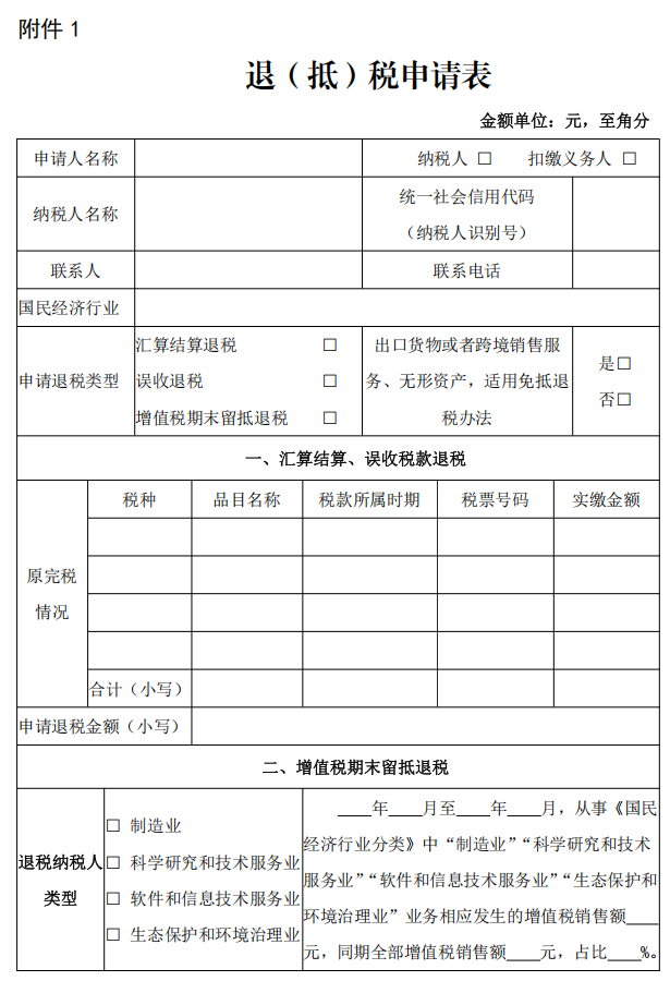 附件:1.退(抵)稅申請表