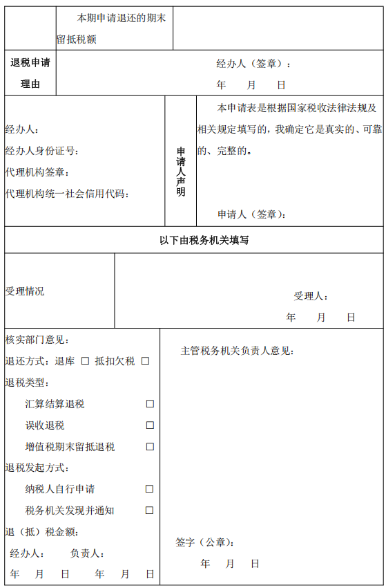 一、本表適用于辦理匯算結(jié)算、誤收稅款退稅、增值稅期末留抵退稅。
